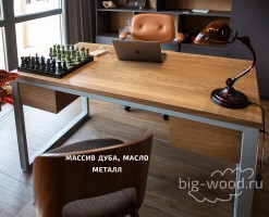 Купить письменный стол из массива дуба, ясеня и бука на заказ по ценам от производителя Бигвуд с доставкой в Тюмень, Тобольск, Ишим и другие из Челябинска. Изготовим офисные и компьютерные столы полностью деревянные или с металлическим каркасом в стиле лофт.