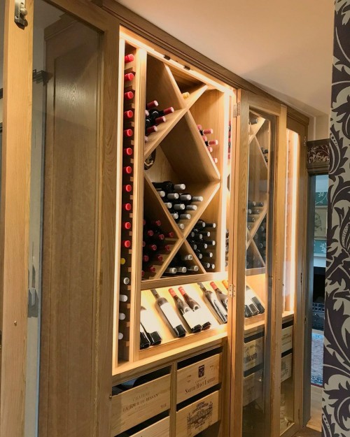 Винный шкаф из массива должен быть построен с определенным требованиями. Например, необходимо соблюдать соответствующую температуру (от 10 до 15 градусов) и влажность (85%). Помимо этого, на бутылки не должны попадать прямые солнечные лучи, так как это может привести к потере истинных вкусовых качеств благородного напитка.